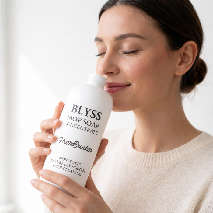 That's exactly what Blyss Mop Soap is built on. Formulated at pH 6.5–7 with coconut-derived surfactants, castor oil, and biodegradable fruit extracts, it lifts dirt and grime while evaporating clean. Zero film. Zero streaks. The only thing left behind is the scent — and that's on purpose.